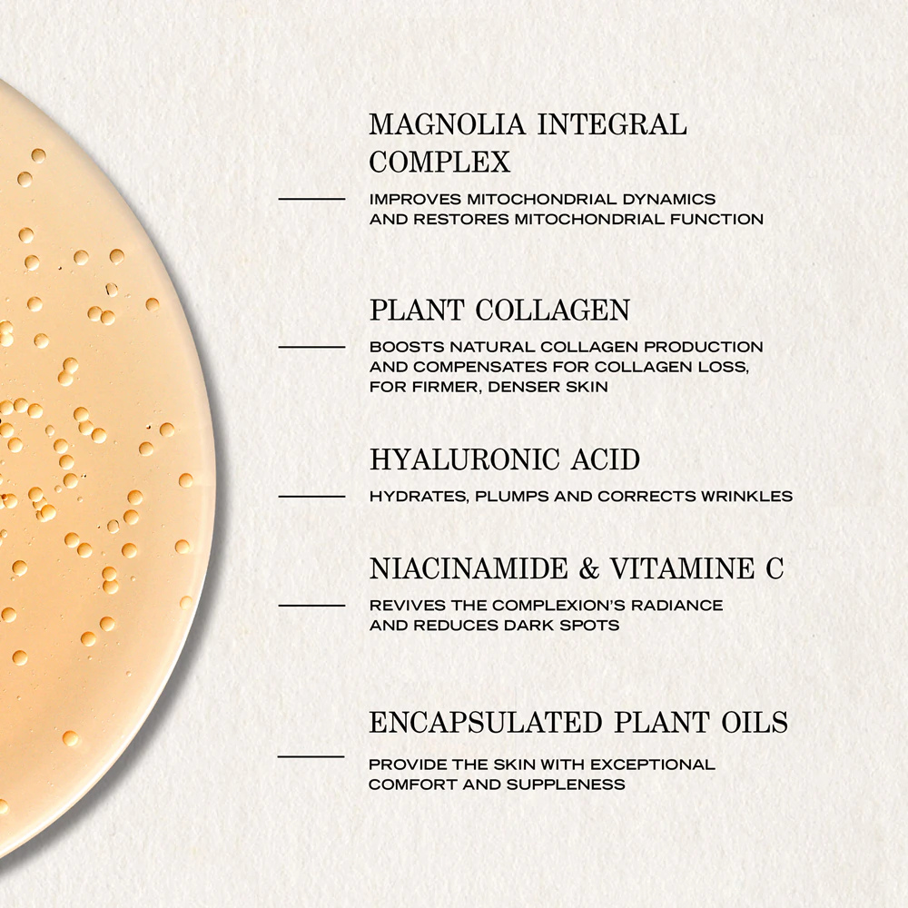As part of the reverse ageing* approach, our experts turned to magnolia— a plant known for its powerful antioxidant properties, largely due to its high concentration of magnolol and honokiol, two molecules that make it significantly more effective than commonly used cosmetic ingredients like vitamin E or resveratrol.