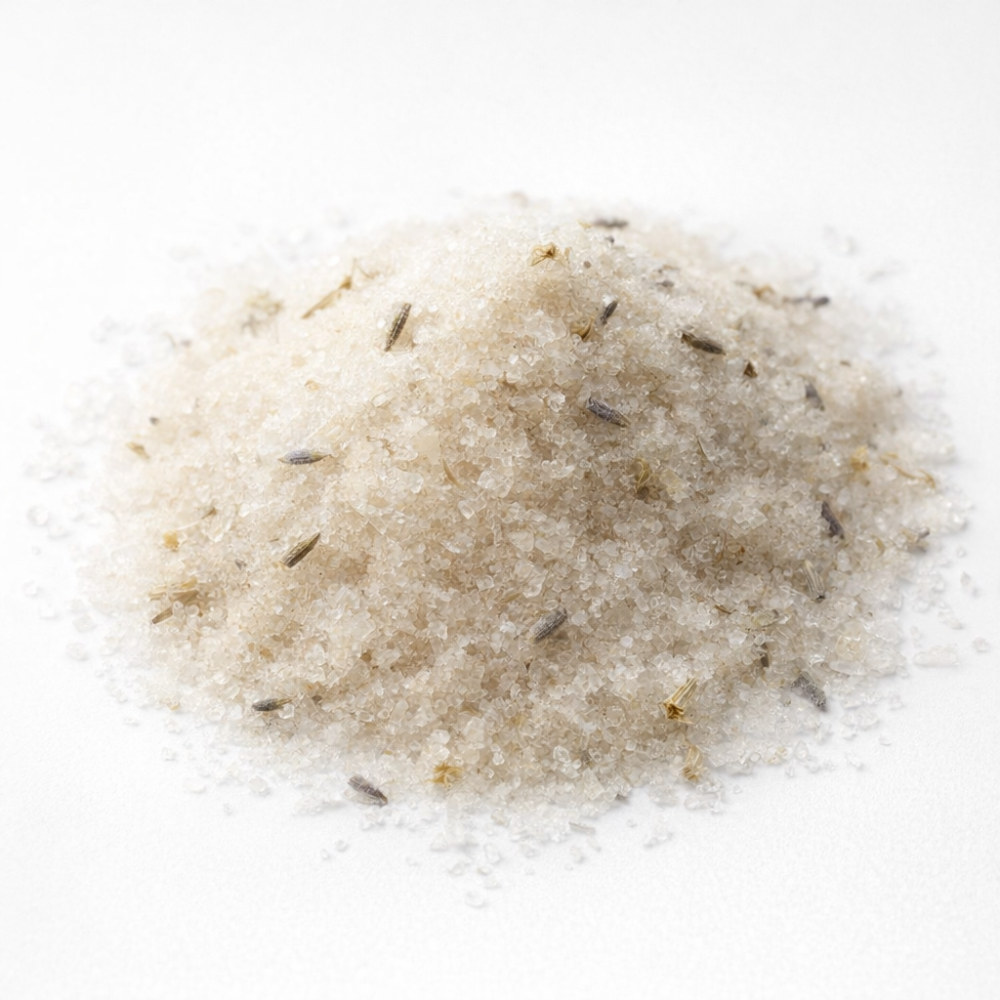 Epsom Salt (Magnesium Sulphate), Fine Celtic Sea Salt, Active White Kaolin Clay, Colloidal Oatmeal, Lavender Oil*, Roman Chamomile (Chamaemelum Nobile) Oil*, Tapioca Starch, Lavender Flower.